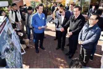 먼저, 사상구 괘내마을을 방문한 이낙연 총리는 사업현장에 대한 설명을 경청했다.