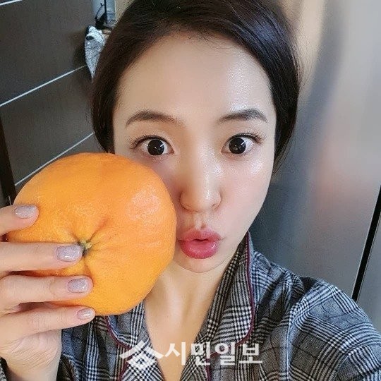 사진 속 홍자는 얼굴만한 레드향을 들고 사랑스러운 미모를 과시해 남심을 사로잡았다.