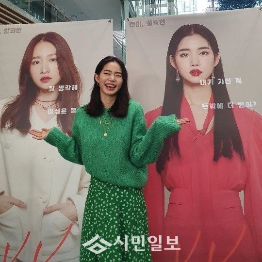 공개된 사진 속 황승언은 초록색 의상을 입고 자신의 얼굴이 담긴 대형 포스터 앞에서 포즈를 취하고 있는 모습으로 웃음을 자아냈다.