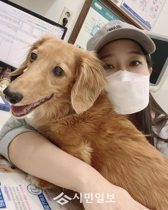 공개된 사진 속 김하영은 마스크를 쓰고 반려견을 꼭 끌어안고 있는 모습으로 훈훈함을 자아냈다.