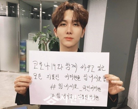 가수 김수찬은 자신의 인스타그램에 "안녕하세요 김수찬입니다! 코로나19의 확산 방지를 위해 고생하시는 전국 의료진 여러분들과 관계자분들 모두 응원합니다. 코로나19 예방을 위해 마스크 착용과 30초간 깨끗하게 손 씻기, 기침예절을 잊지 마세요!"라는 게시글과 함께 한 장의 사진과 영상을 게재했다.