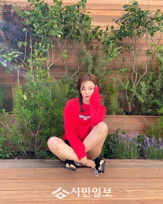 슬기는 자신의 인스타그램 계정에 앉아서 찍은 사진을 게재했다. 슬기는 사진과 함께 "발꼬락 힘주기"라고 글을 남겼다.