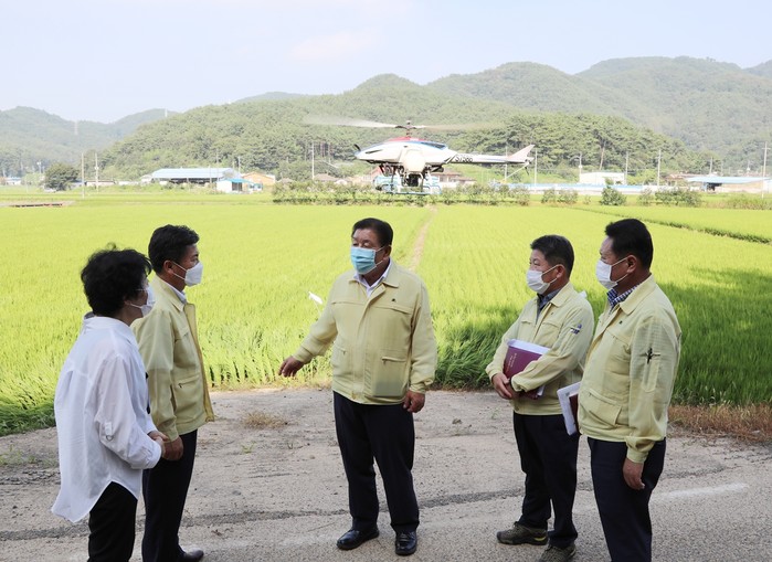 [함안=최성일 기자]조근제 함안군수는 지난 20일 조근수 농협함안군지부장, 관계공무원 등과 함께 함안면 백암들 벼 병해충 항공방제 현장을 방문하여 관계자들을 격려하고 벼멸구, 혹명나방 등 병해충으로 인한 피해를 입지 않도록 방제에 만전을 기해줄 것을 당부했다.