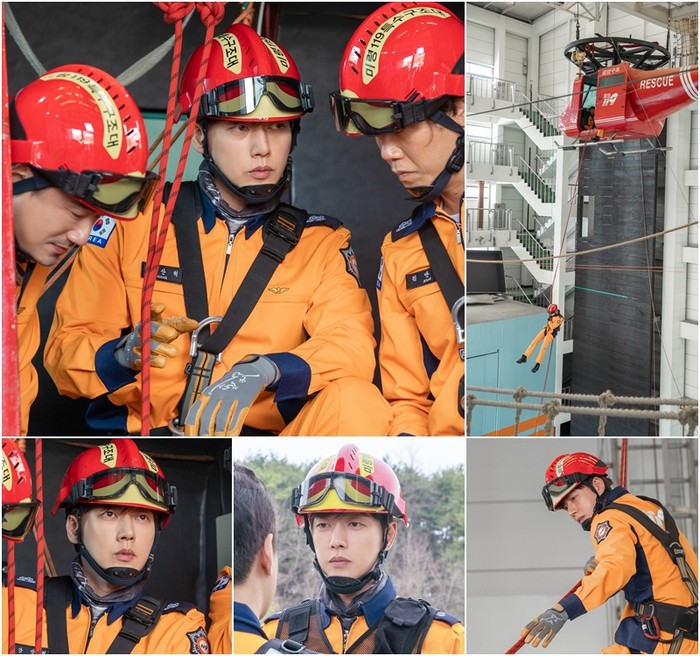 공개된 사진 속 박해진은 머리부터 발끝까지 119 구조대 원복을 입고 등장, 눈길을 모았다. 그는 레펠 하강 장면을 단번에 완성해 보는 이들의 감탄사를 자아냈다고. 더욱이 대본에 맞춰 능숙한 표현과 상황을 연기하며 극의 완성도를 높였다.