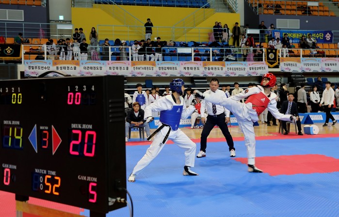 함안군체육회가 주최하고 함안군태권도협회(회장 최승필)가 주관한 이날 대회는 겨루기와 품새 종목으로 나눠 토너먼트 방식으로 진행됐으며, 열띤 겨루기와 절도 있는 품새로 기량을 겨루고 화합과 교류의 장을 만들었다.