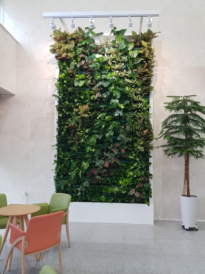 | ▲ 창녕군 보건소 1층 로비에 설치된 수직정원 |