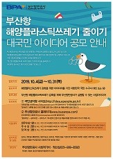 부산항만공사(BPA, 사장 남기찬)는 부산항의 여건과 특성을 고려하여 국민관점에서 바라본 해양 플라스틱쓰레기 줄이기를 위한 아이디어를 발굴하고자 4일부터 이달 말까지 ‘부산항 해양플라스틱 쓰레기 줄이기 대국민 아이디어 공모’를 진행한다고 4일 밝혔다.