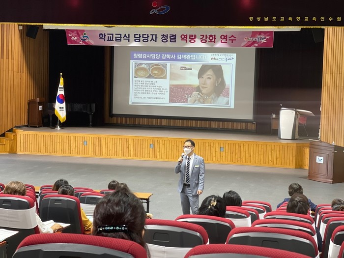 이번 연수는 경남교육청의 청렴정책 추진 방향과 학교급식 분야 외부청렴도 평가 기준에 대한 이해도를 높이고, 잦은 민원 사례의 공유로 실무자들의 청렴 역량을 향상시키는데 중점을 두었다.