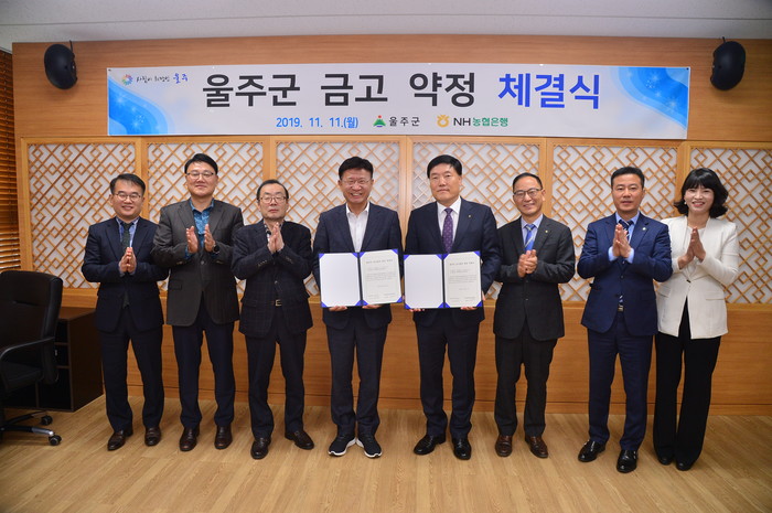 울주군이 오는 2020년부터 3년 간 NH농협은행이 울주군 금고지기로 지정됐다고 밝혔다. 울주군과 NH농협은행 울산영업본부는 11일 군청 7층 은행나무홀에서‘울주군 금고 약정 체결식’을 진행했다.