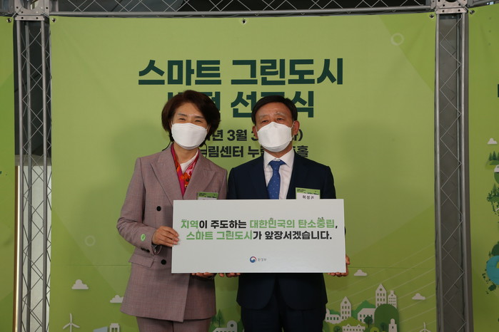 스마트 그린도시 사업은 정부의 그린뉴딜 대표 사업으로 도시의 기후·환경문제에 대한 진단을 토대로 기후, 물, 대기 등 다양한 환경 분야 사업들을 융복합하는 지역 맞춤형 환경개선사업으로 공모를 통해 지난해 12월 종합 선도 형 5곳, 문제 해결 형 20곳이 선정됐다.