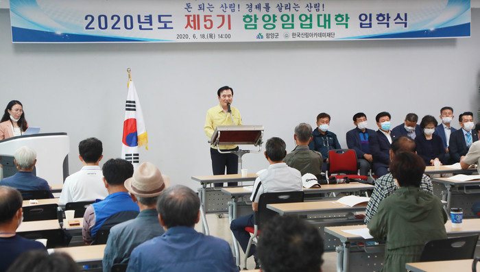 함양군은 18일 오후 2시 함양군 농업기술센터 1층 회의실에서 입학생 및 임업관계자 등 60여명이 참석한 가운데 제5기 함양임업대학 입학식을 개최했다.