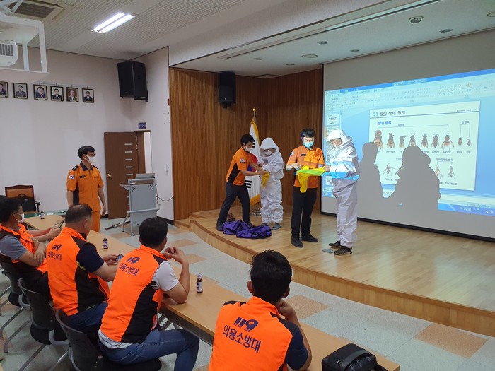 한편, 안전한 현장 활동을 위해 지난 20일과 25일에 ▲벌 생태 특성, 종류 및 벌집제거 요령 ▲벌집제거 현장대응 매뉴얼 ▲벌쏘임 방지복 착용 방법 ▲현장안전사고 예방과 응급처치법 등 교육을 실시했다.