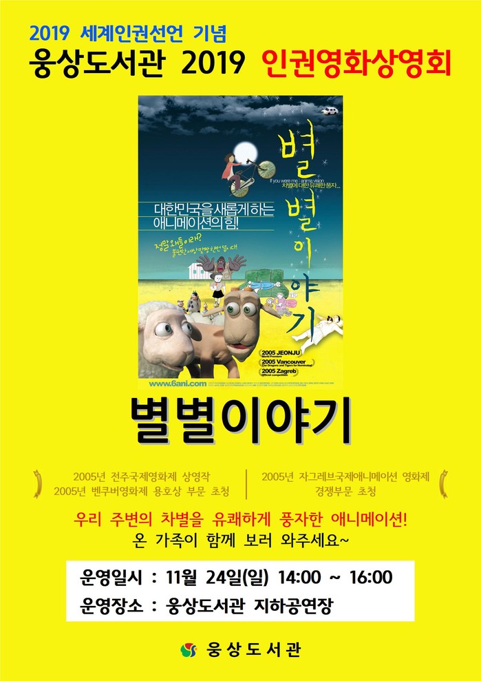 양산시 웅상도서관은 2019년 세계인권선언을 기념해 인권영화 ‘별별이야기’를 오는 24일 상영한다.