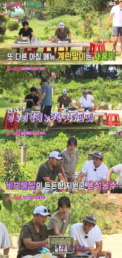 이에 웃어 넘긴 김윤정은 박재홍에 다가가 “소금 간 했나? 간을 봐야 한다”라며 계란말이 요리를 도와줬다.