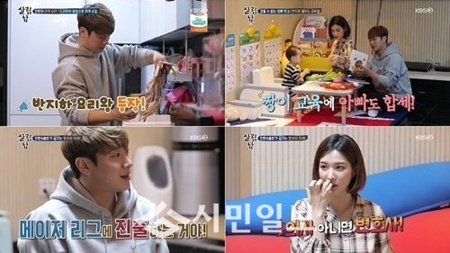 한편, 재율의 체중이 적게 나가는 것이 마음에 걸린 민환이 "보양식 먹여야겠다"라며 대게를 사 와 율희와 재율을 위한 요리를 하는 세심한 모습으로 흐뭇한 미소를 자아냈다.
