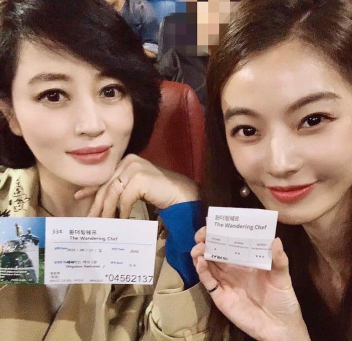 공개된 사진 속 윤소이는 김혜수와 영화 티켓을 들고 카메라에 포착됐다.