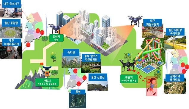 이 밖에 인공지능(AI) 기반 드론 활용 서비스를 지역 대표 관광지인 태화강 국가정원, 동구 대왕암공원, 영남알프스 등 3곳에 대한 고화질 영상데이터를 구축하고 관광지 주변 교통.안전 정보 제공, 산림지 인명 수색용 객체 탐지 드론 서비스 등을 구축하고 실증할 예정이다.