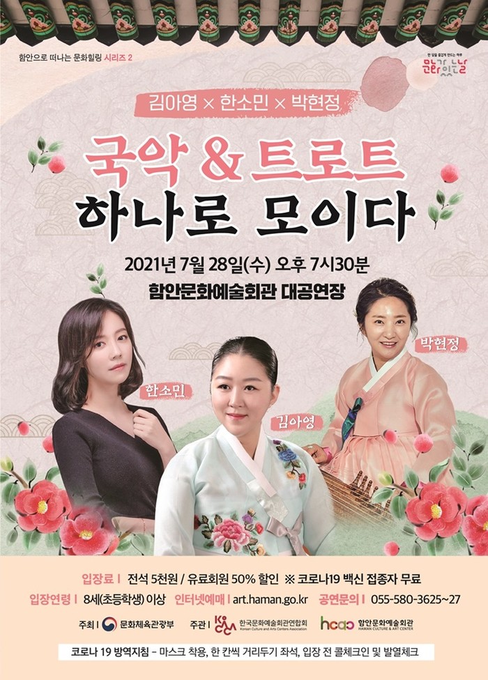 국악계의 대모 김영임의 수제자 김아영과 떠오르는 트로트 신예 한소민, 가야금 연주자 박현정이 함께하는 ‘국악&트로트 하나로 모이다’ 공연이 오는 28일(수) 오후 7시 30분 함안문화예술회관 대공연장 무대에 오른다.
