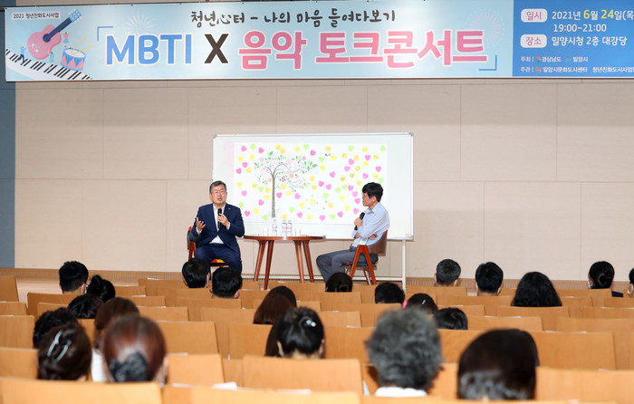 밀양시(시장 박일호)는 2021년 청년친화도시사업의 일환으로 24일 밀양시청 대강당에서 청년들이 MBTI(성격유형검사)를 통해 자기를 탐색하고 검사를 토대로 청년들과 대화하는 시간을 갖는「MBTI 토크콘서트」를 개최했다.