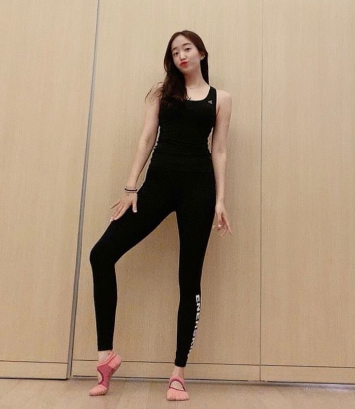 공개된 사진 속 유다솜은 몸에 밀착되는 레깅스를 입고 카메라를 쳐다보고 있다.