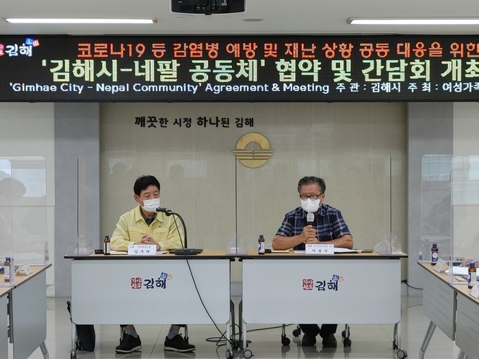 [김해=최성일 기자] 김해시(시장 허성곤)는 지난 15일 시청에서 김해시-네팔 공동체간 코로나19 등 감염병과 재난상황 공동대응을 위한 협약을 체결하고 공동체 대표와의 간담회를 실시했다고 밝혔다.