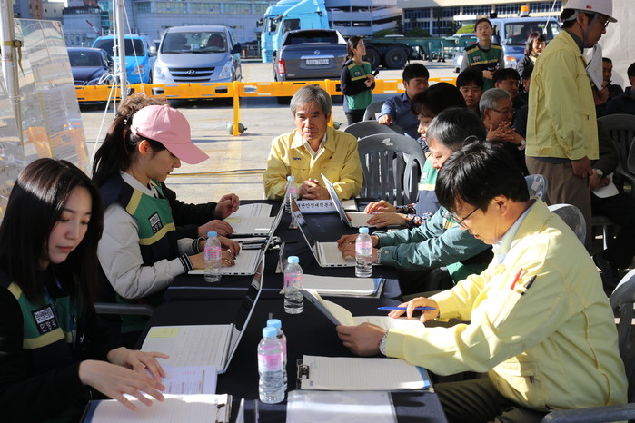 특히 부산 모 중학교 학생 80여 명이 배를 타고 수학여행을 간다는 설정으로 중학생과 대학생 체험단, 터미널 내 입주기업 근로자 등이 현장에서 신속히 대피하는 모습과 현장 응급의료소 등이 평가단에 깊은 인상을 주면서 높은 점수를 받았다.