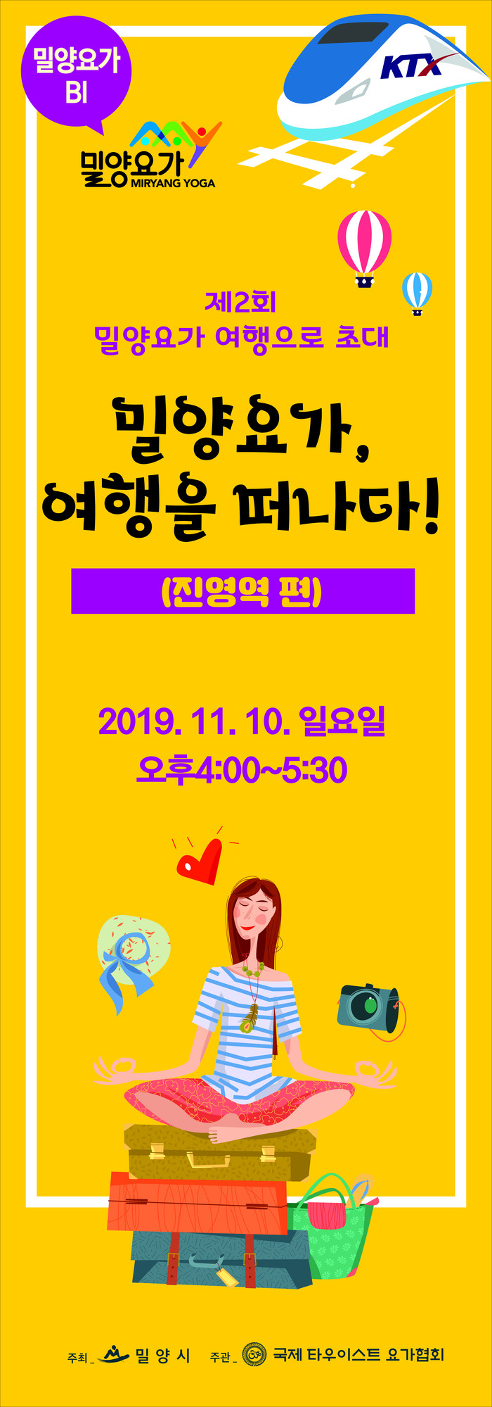 ‘밀양요가 여행으로 초대!’는 밀양의 특색 있는 관광과 밀양요가를 널리 알리는 사업으로 관광객 유치와 경제 활성화를 위한 역점 시책 사업이기도 하다.