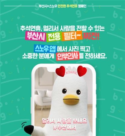 부산시는 내일(13일)부터 26일까지, 누리소통망(SNS)을 통해 비대면 안부 인사 캠페인을 진행한다. 시 자체 제작 필터를 이용해 촬영한 사진 또는 동영상을 개인 인스타그램 계정에 필수해시태그(#추석부산안전)와 함께 올리면 참여가 완료된다. 시는 추첨을 통해 선정된 100명에게 1만 원 상당의 모바일 문화상품권을 제공할 예정이다.