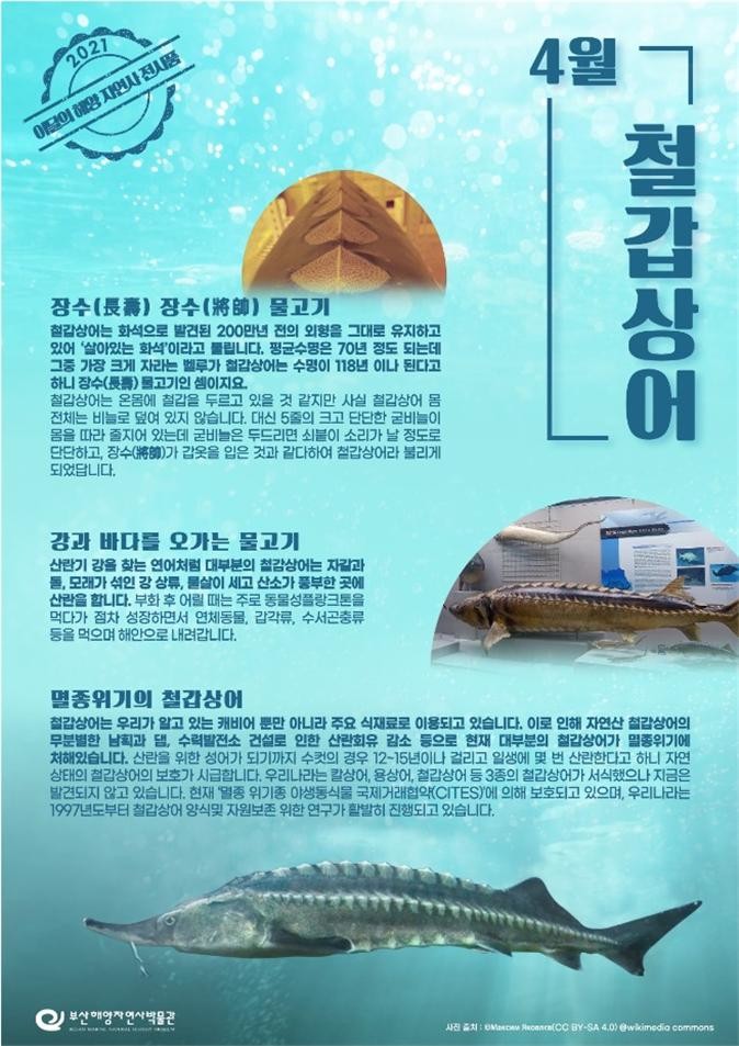 부산시(시장 권한대행 이병진) 해양자연사박물관은 4월 ‘이달의 해양자연사 전시품’으로 ‘철갑상어’를 선정했다고 밝혔다.