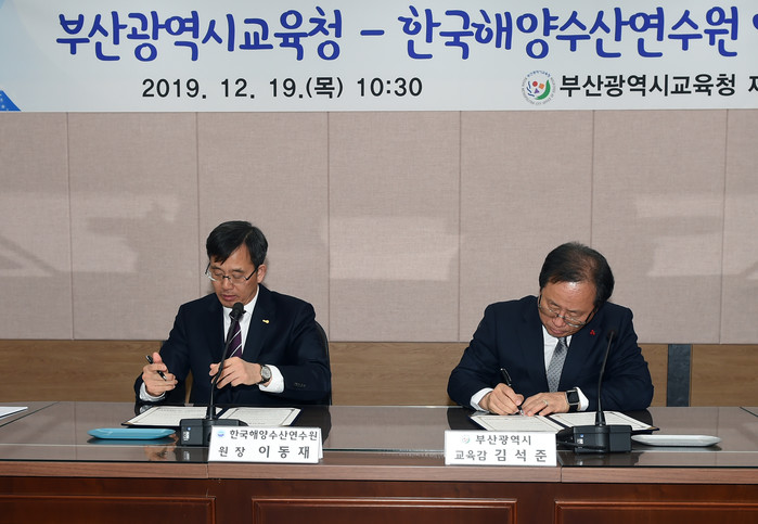 부산광역시교육청(교육감 김석준)은 지난 19일 오전 10시 30분 시교육청 에서 한국해양수산연수원(원장 이동재)과‘해양안전교육 활성화를 위한 업무협약’을 체결했다고 19일 밝혔다.