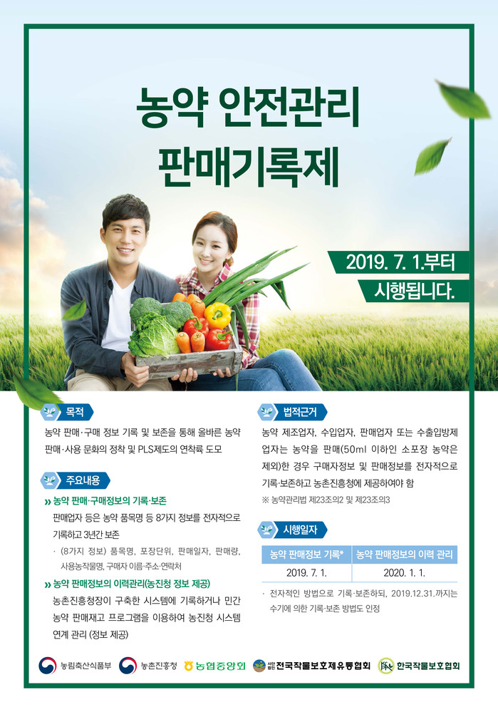 2020년 1월 1일부터는 농약 판매정보의 수기기록이 허용되지 않고 농약안전정보시스템을 통한 전자적 기록이 의무화되며, 기록된 농약 판매정보는 농촌진흥청장에게 제공되어 PLS(농약허용기준강화)제도에 맞는 적합 농약만 판매·사용하도록 구매자별 체계적인 이력관리가 이루어진다.