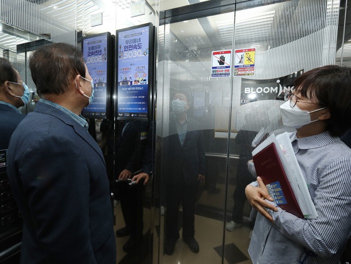 이날 조 군수는 아파트 내 승강기에 설치된 군정홍보용 모니터 작동현황을 꼼꼼히 살피고 관계자들을 격려했다.