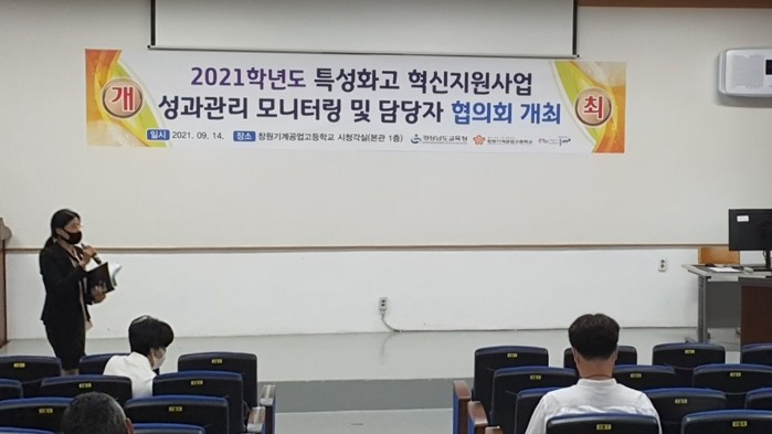 경상남도교육청(교육감 박종훈)은 지난 14일 창원기계공업고등학교에서 특성화고 혁신지원사업 담당자 협의회를 실시하였다. 협의회는 특성화고 혁신지원사업 운영 현황 공유와 질의 답변, 상담 순서로 진행되었으며, 사전에 학교별 자체평가를 통하여 중간 성과관리를 점검하였다.