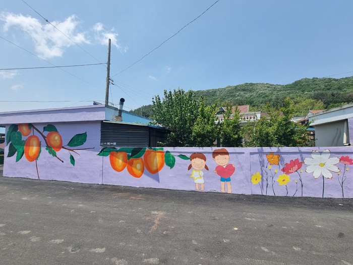 사업비 2500만 원을 투입하여 지난 4월 28일부터 사업을 시작했으며 용역업체 및 마을주민들도 그림 선정과 색칠작업에 직접 동참하여 354㎡ 구간에 걸쳐 벽화를 완성했다.