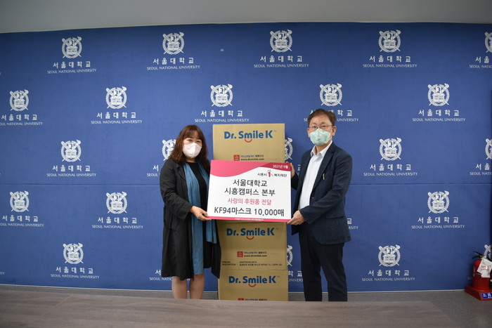 [시흥=송윤근 기자] 경기 시흥시 서울대학교 시흥캠퍼스본부(본부장 오헌석)는 지역사회의 코로나19 극복 노력에 동참하고자 KF94 마스크 1만장을 시흥시 1% 복지재단(이사장 성낙헌)에 기부했다.