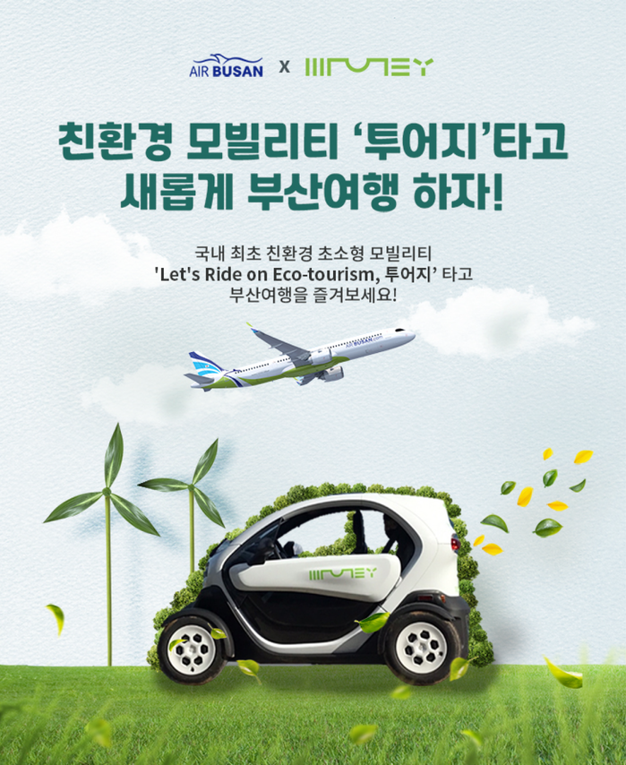에어부산(대표 안병석)이 부산 벤처 기업 ‘투어스태프’와 제휴를 맺어 초소형 친환경 모빌리티 공유 서비스인 ‘투어지’ 요금에 대한 할인 혜택을 제공한다.