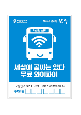 부산시(오거돈 시장)는 시민들의 대중교통이용 편의제공과 가계통신비 절감을 위한 소확행 사업으로, 오는 26일부터 전체 시내버스 2517대에 무료 공공와이파이 서비스를 시행한다고 밝혔다.