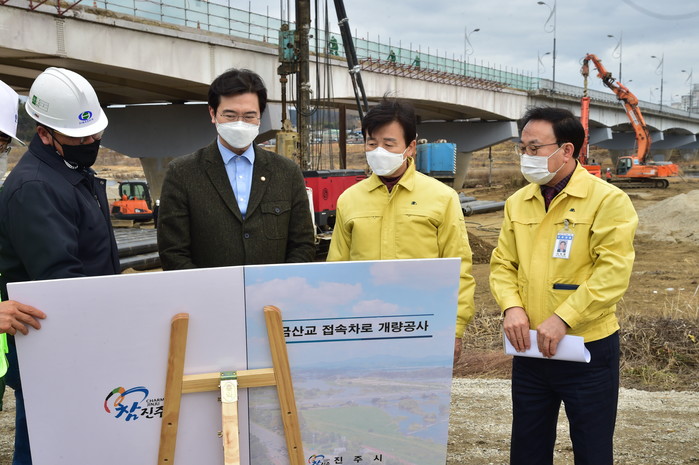 금산교 확장 공사는 2022년 4월 준공을 목표로 하고 있으며 103억원이 투입된다. 이중 7억원은 강민국 국회의원(국민의 힘, 진주을)이 확보한 특별교부세이다. 시는 지역민의 숙원사업을 하루빨리 해소하기 위해 교통시설 부분은 가능한 올해 말에 완공시킨다는 방침이다.