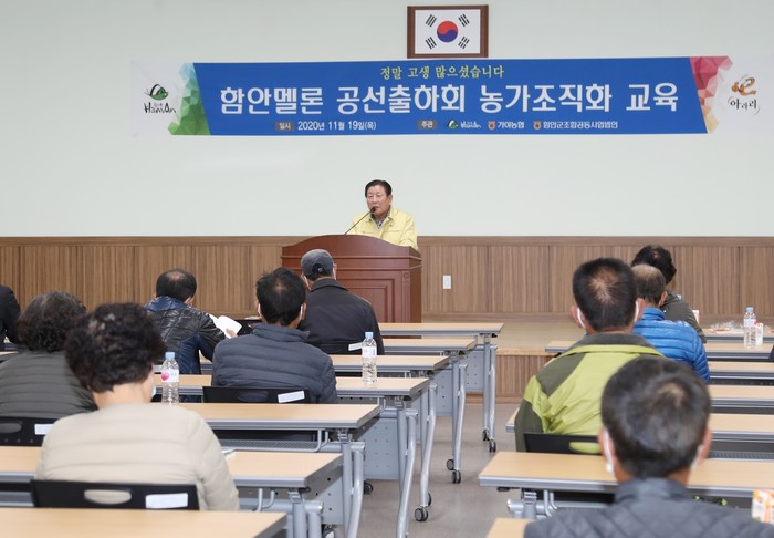함안멜론 공 선회는 지난 19일 오후 6시30분, 가야농협 APC교육장에서 멜론 재배기술 교육을 실시했다.