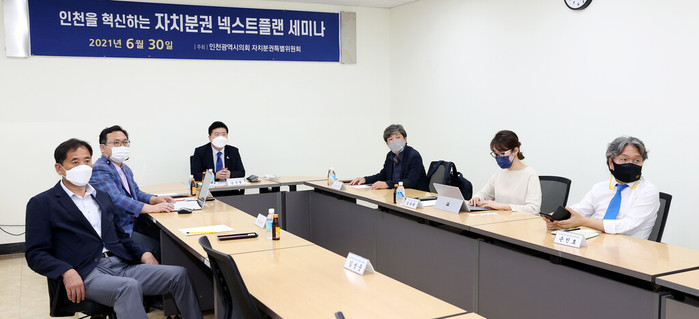 [인천=문찬식 기자] 인천시의회 자치분권특별위원회와 자치분권 ‘동록개의 꿈’ 혁신연구회가 최근 시의회 행정안전위원회 세미나실에서 ‘인천을 혁신하는 자치분권 넥스트플랜 세미나’를 진행했다.