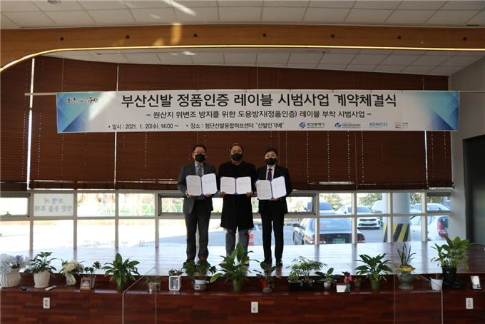 이를 위해 지난 1월 20일 ㈜먼슬리슈즈, 한국조폐공사, (재)부산경제진흥원 신발산업진흥센터가 시범사업 계약을 체결하였다. ㈜먼슬리슈즈는 “베이크솔”이란 로컬 신발브랜드로 작년 중국시장에 진출하였으며, 진출 과정에서 위조품으로부터 보호받을 방법을 고민하다 부산시에 도움을 요청하였고 조율 끝에 한국조폐공사와 협력하여 최초로 본 기술을 신발에 도입 할 수 있게 되었다.