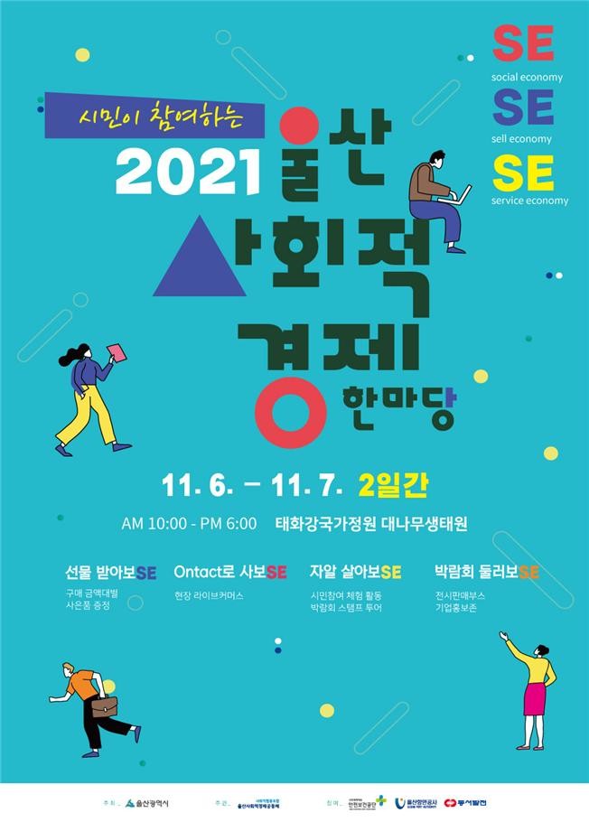 울산시는 11월 6일 ~ 11월 7일(2일간) 태화강국가정원 대나무생태원에서 ‘2021년 울산 사회적경제 한마당’를 개최한다고 밝혔다.