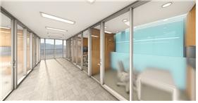 16개의 방음부스를 갖춘 분리형 온라인 상담장