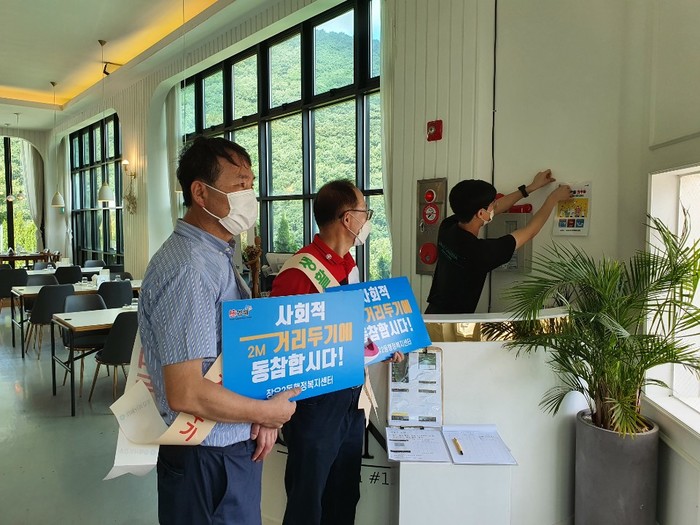 한편, 장유2동에서는 코로나19 확산방지를 위해 관내 음식점, 학원, 교회 등 다중이용시설 방역을 지속적으로 실시하고 있으며, 유관기관 및 자생단체, 아파트 홍보 방송 등을 통해 방역수칙 실천 자발적인 참여를 독려하고 있다.