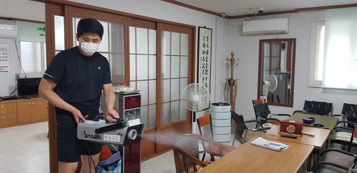 영광교회는 코로나19에 취약한 어르신들의 안전을 위해 예방 방역을 하기로 했으며, 7월 30일과 31일 양일간 교회 청년회에서 장흥경로당 등 17개소 경로당을 소독 방역했다.