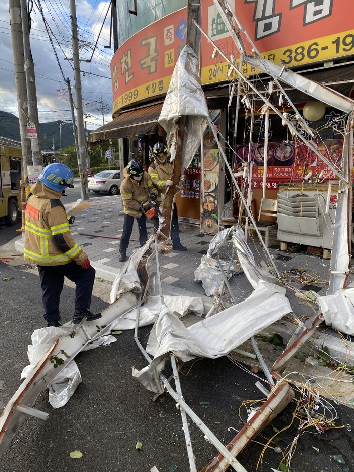소방서는 지난 3일 오전 11시 태풍경보가 해제될 때까지 양산 관내 총 125건의 신고가 접수 됐고 장비 143대와 501명의 소방력을 동원하였다. 하천범람 및 상습침수지역 등 인명피해 우려지역 순찰을 강화했으며, 강풍에 의한 간판추락, 수목 쓰러짐, 창문파손, 건물외벽 파손, 배수 작업 등 안전조치 및 구조 활동을 실시했다. 또한 긴급구조활동으로 4건, 7명의 인명구조로 인명 및 재산 피해 최소화에 총력을 기울였다.