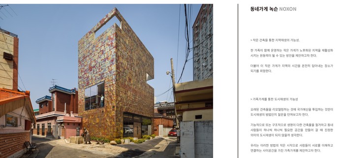 올해 대상작품인 ‘동네가게 녹슨’은 2019 한국건축가협회상 수상작품으로 선정되어 기쁨을 더하고 있다.