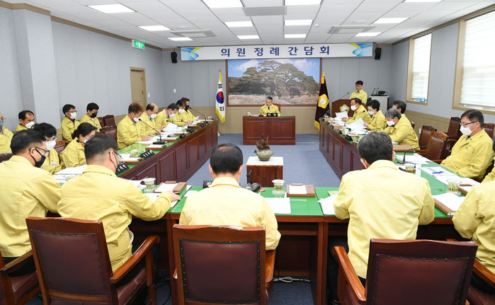 석만진의장은 인사말에서 “코로나19 확산 방지를 위한 사회적 거리두기는 내달 5일까지 연장하지만 확진자수의 현격한 감소와 경제적 영향 등을 고려해 종교, 유흥, 실내체육시설, 학원에 대한 운영중단 권고를 해제한다는 정부 지침이 발표됐다.”며 “그러나 다음주 이른바 황금연휴를 앞두고 있고 사회적 거리두기의 강도 완화로 자칫 코로나19가 재확산되지 않도록 방역에 더 철저를 기하고 군민 개인위생수칙 준수로 마지막까지 코로나19 극복 노력에 집중해줄 것”을 당부했다.
