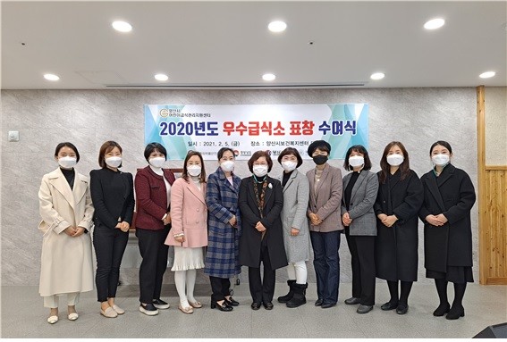 양산시 어린이 급식 관리지원센터(이하 센터, 센터장 류호경)에서 지난 5일 ‘2020 우수급식소’ 표창 수여식을 개최했다.