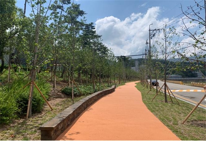 | ▲ 금정구 금사공단주변 미세먼지 차단숲(2020년 준공). |